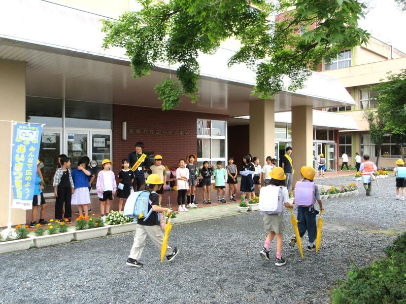 学校運営協議会委員さん、PTAの方も御協力くださり、子どもたちと挨拶を交わしてくださいました。