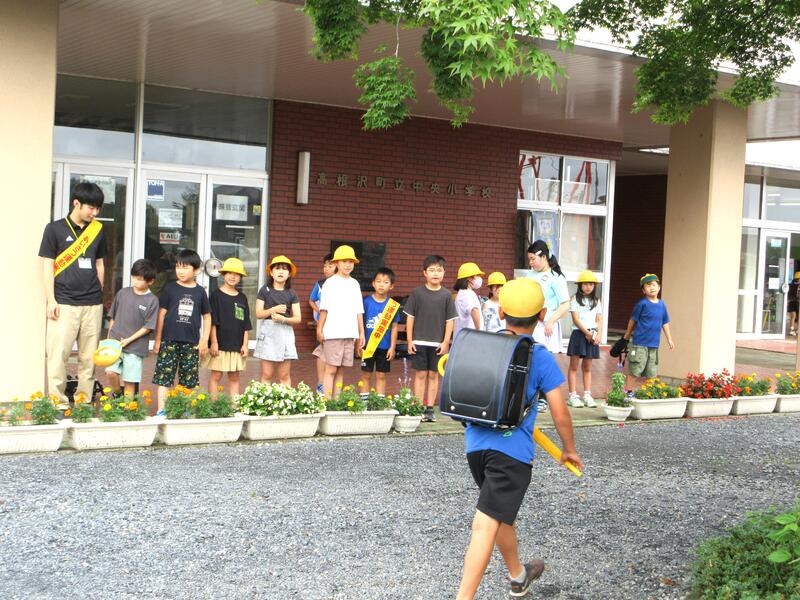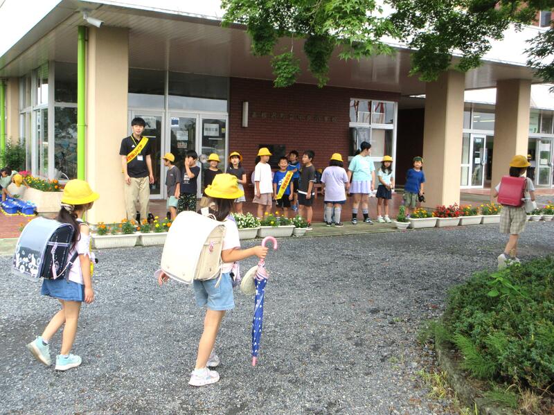 登校した児童からランドセルを置いて、玄関のところでみんなに「おはようございます!」と元気に挨拶をすることができました。