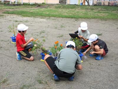 3年生の理科では、夏休みにかけて育てていたホウセンカやマリーゴールドの種を観察し、植木鉢の片づけを行いました。