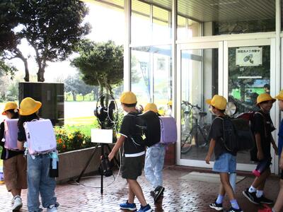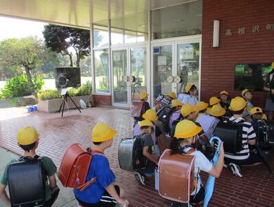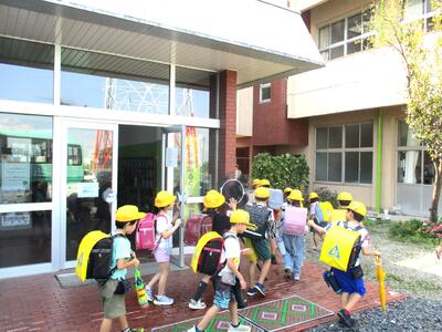 また、今日は全学年が同じ時間に下校する一斉下校の日であるため、登校班ごとに(スクールバスの班も)集まり、登下校の仕方を振り返って、交通ルールを守り安全に登下校することを再確認しました。