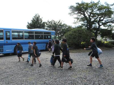1年生・2年生・3年生・6年生が水泳学習に出発しました。
