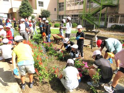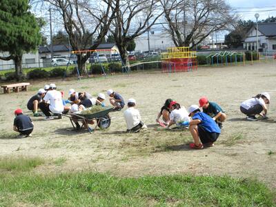 昨日のなかよしタイムは、グリーンタイムでした。なかよし班ごとに、花壇や校庭の除草に取り組みました。