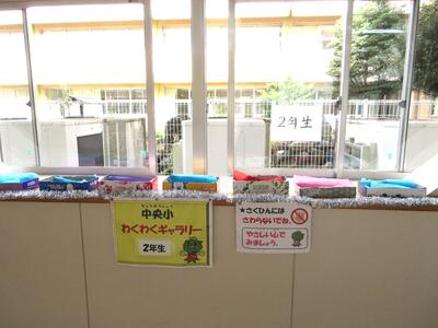 今年度から始めている、各学年の授業で制作した作品を展示する「わくわくギャラリー」。