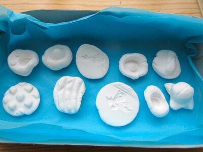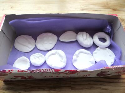 身の回りのでこぼこを見つけて、粘土で写し取って作っています。