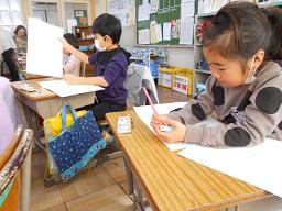 今日の2時間目に、2年生の図工の授業を見てきました。「ステンシルはんが」というもので、みんな楽しそうに下絵をかいて、それをシールになっている紙に写していまいた。初めて見る教材なのでどんなものができ上がるのかよくわかりませんが、でき上がりがとても楽しみです。