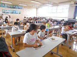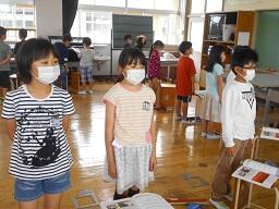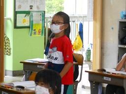 今日の5時間目に、4年生の音楽の授業も見てきました。「きき合いながら、楽しく歌おう」ということで「プパポ」の歌の練習をしていました。本校は、円を作って全員外向きでマスクを付けての歌唱は、換気に気をつければ実施可能にしています。子どもたちは、「プパポ」をなかなか言いにくいようでしたが、楽しく歌っていました。早くマスクを取って、全員が担任の方向を見て歌える日が来ることを待ち望んでいます。