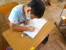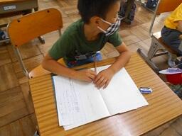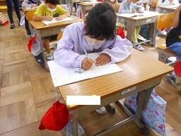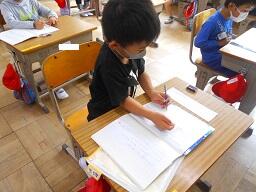 今日、1年生が初めて連絡帳を書きました。今までは、印刷された紙を、連絡帳に貼っていましたが、今日は鉛筆で、自分の手で書きました。みんなとても真剣な表情で書いていました。今日、お子さんの連絡帳を見たらサインをしながら子どもたちを褒めてあげてください。よろしくお願いします。(これで全員23名の1年生です)