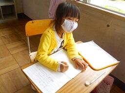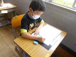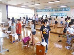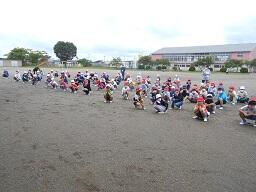 今日の昼の活動の時間に、地震から火災の避難訓練を実施しました。臨時休業明けすぐに、避難経路確認を行いました。そして今日は、それを生かしての避難訓練です。全員避難するまでに3分37秒でした。これは、去年とほとんどかわらない時間でしたが、残念なことに少し話し声が聞こえてきました。校長の話では、このことにふれ、1年生でも、2年生でも「自分の命は自分で守る」、そのためにも無言集合ができるようにならなくてはいけないことを、少し厳しめに話しました。