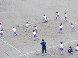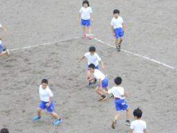 今日の5時間目に、2年生の体育の授業を見てきました。準備体操の後に、「走・跳の運動遊び」で、子どもたちはいろいろな走り方で走ったり、跳んだり楽しそうに活動していました。その後に、グループ分けをしてしっぽ取りのゲームを楽しんでいました。みんな必死で逃げたり、追いかけたりして活動量に満ちた授業でした。