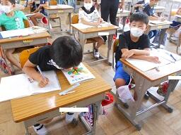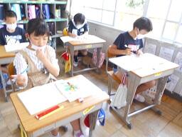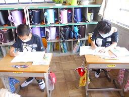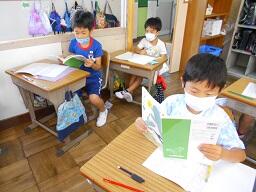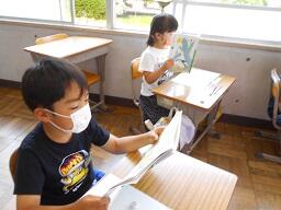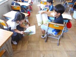 今日の1時間目に、2年生の国語の授業も見てきました。「ふきのとう」の単元で、となりの人とペアになり好きな場面を選んで音読の練習をし、最後に発表をしていました。みんな楽しそうに練習、そして発表をしていました。ペア学習やグループ学習を実施する時には、できるだけ3密を避けるようにして実施しています。