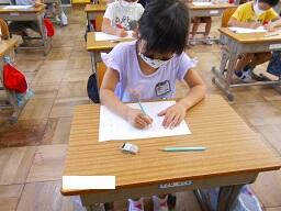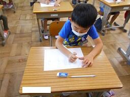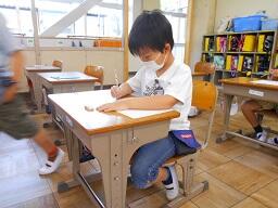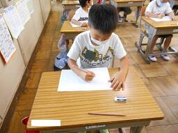 今日の1時間目に、1年生の国語の授業を見てきました。昨日学習した「い」「ち」「ね」「ん」を使って、いちねん、○○○○と自分の名前を大きく書く練習をしていました。みんな真剣な表情で取り組んでいました。それと、今日は1年生、欠席0になりました。うれしい限りです。