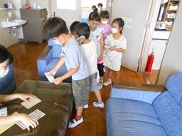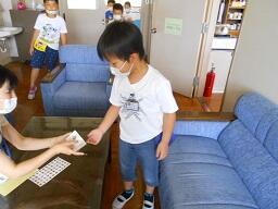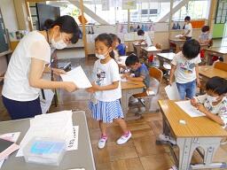 今日の4時間目に校長室で仕事をしていると、道徳の授業中の1年生が訪ねてきました。事前に担任から道徳の授業で「あいさつ」の勉強をするので、途中で校長室にあいさつの練習に行っていいですかと聞かれてたので、喜んで引き受けていました。1年生、校長室に来て、みんな正しくあいさつをして帰って行きました。担任に頼まれたとおり、カードにシールを貼ってあげるとみんなとてもうれしそうでした。(途中からは、人数が多くなったので担任にシールを貼ってもらいました。)