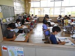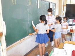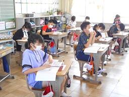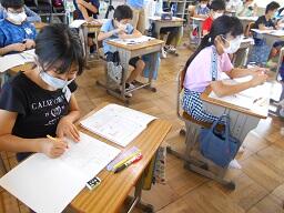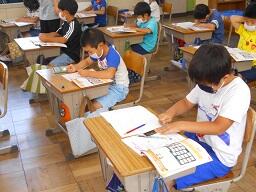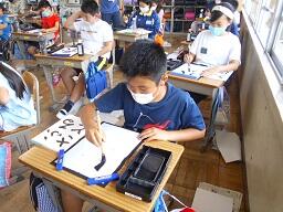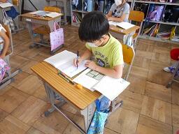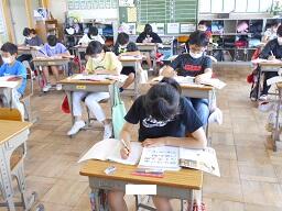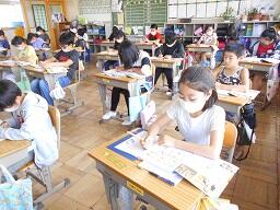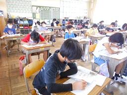 今日の3時間目に、5年生の書写の授業を見てきました。最初に、はねやはらい、とめ等の確認をして練習した後に、「ふるさと」の文字の練習をしていました。みんなとても上手に書けていると思いました。見ている途中で「校長先生、どうやったら上手に書けますか。」と聞かれましたが、いい答えが見つからなかったので「申し訳ありません。校長先生には、わかりません。」としか答えられませんでした。今度聞かれたときのために、答えを考えておきたいと思いました。