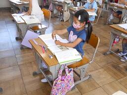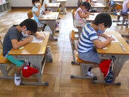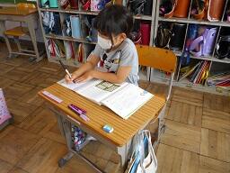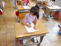 今日の2時間目に、1年生の国語の授業を支援をしながら見てきました。「い」「ち」「ね」「ん」の4つの平仮名の学習をしていましたが、みんな真剣に取り組んでいました。びっくりするぐらい落ち着いている1年生です。このまま、このまま成長していくような指導がしていければと考えています。