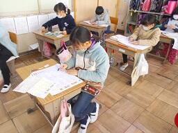 今日の1時間目に、4年生の国語の授業を見てきました。以前お知らせした、「もしものときにそなえよう」の単元で、自分が選んで災害について調べたことをもとに、作文を書いていました。なかなかいいものが書けているようでした。