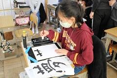 今日の2時間目に、6年生の書写の授業を見てきました。卒業式会場に飾る色紙を書いていました。みんな緊張して書いているのがよくわかる授業でした。