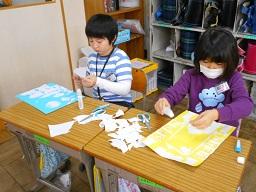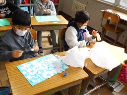 今日の2時間目に、2年生の図工の授業を見てきました。「はさみのアート」ということで、紙をいろいろな形に切って、並べてはっていき何に見えるか想像しようというものです。子どもたちは楽しそうに紙を切って、それを画用紙に張り付けて、何に見えるかいろいろ想像していました。