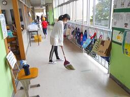 班長会議の後の掃除の様子を見て歩いていると、1階の水道掃除に黙々と取り組んでいる3年生の女の子を見つけたので「がんばっているね」と声をかけてほめました。するとそこの掃除分担区の先生が「○○さんが(5年生の男子)が、しっかり教えてくれたからです」と教えてくれました。何とも気持ちがよかった一瞬でした。この3年生女子と5年生男子にいいとこめがね5決定です。5年生男子のことを見逃さず、すかさず3年生女子がほめられているときに伝えてきた本校職員も素敵だと思いました。