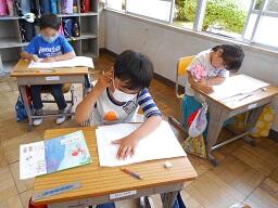 今日の3時間目に、2年生の国語の授業を見てきました。1年生の最後の「いい こと いっぱい、一年生」の単元で、1年間の出来事を振り返って、「思い出カード」を書く授業が展開されていました。臨時休業のため、時期は遅れてしまいましたが、1年生の時に楽しかった、遠足、運動会、大縄大会、学校紹介・・・のことを思い出しながら、各自真剣に書く活動に取り組んでいました。(その中にも、昨年の行事のことを思い出して、楽しそうな表情を浮かべている児童が何人もいました。)