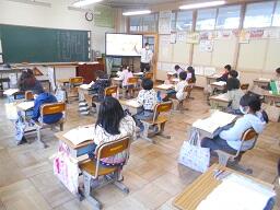 今日の1時間目に、2年生の外国語活動の授業を見てきました。いろいろな形を英語で発音する学習をしていましたが、ゲームなどが取り入れられ、とても楽しそうに活動していました。今日で年間10時間の授業が終了しました。
