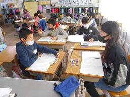今日の1時間目に、少人数で実施している5年生の算数の授業を見てきました。どちらのクラスもプリントを使て学習が進められていましたが、みんな一生懸命に取り組んでいました。