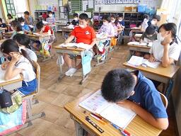 今日の1時間目に、5年生の算数の授業を見てきました。公式を基に体積の問題を解く授業が展開されていました。みんなとても落ち着いて真剣に問題を解いているのが印象的でした。算数は。5年生での学習内容がとても重要で量的にも多く感じます。今の5年生だったら大丈夫だと思います。