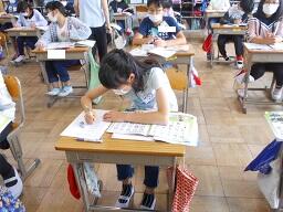 昨日の5時間目に、4年生の道徳の授業を見ているとき、近くの席の人と意見の共有をする場面がありました。その時一人の女子が「密です、密です」と周りの子に言いました。意見を共有するのに気を取られ、距離が近くなってしまったのです。これが本校で目指している、「自分の命は自分で守る」につながるコロナ対策です。子どもたちが確実に育っていることが感じられ、とてもうれしかったです。いいとこめがね15、この4年生女子に決定です。