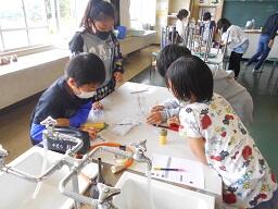 今日の3時間目に、6年生の理科の授業を見てきました。酸素、二酸化炭素、ちっ素について、物を燃やす働きがあるのはどの気体かを調べる実験を行っていました。どのグループも、協力して実験を進め、正しい結果を導き出していました。酸素の中にろうそくを入れたときは、みんな少し驚いていました。(本校では、十分な感染症対策を行った上で、グループ学習を始めました。給食は、まだ全員前向きで実施しています。)