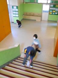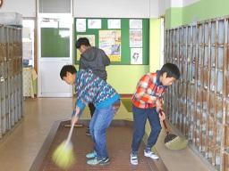 今日の朝は、5、6年生が職員室前や玄関、廊下、階段などを掃除していました。今日は期末PTAで掃除の時間がありません。そこで5年生が今まで6年生がやっていた朝の掃除を6年生から教わりながら今日の朝から実施していたのです。よき伝統が6年生から5年生に確実に引き継がれました。これから5年生、がんばってください。