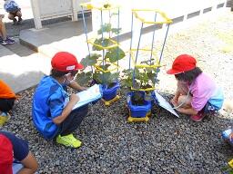 今日の2時間目に、2年生の生活科の授業を見てきました。臨時休業中に御家庭で植えて頂いた野菜の観察をし、カードに記録していました。みんなとても立派に育った野菜をしっかり観察しまとめていました。野菜を植えた鉢を今日までに学校へ持ってくることになっています。お忙しいところ申し訳ありませんが、ご協力よろしくお願い致します。