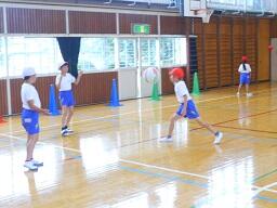 今日の3時間目に、3年生の体育の授業も見てきました。プレルボールの導入で、3人組でボールを使っていろいろな活動を行っていました。みんなとても楽しそうでした。