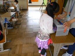 今日の5時間目に、5年生の図工の授業を見ているとき、担任が作業を止めて「早退者の荷物をまとめて持ってきてくれる人」と声をかけると、男子2名がいち早く手を上げました。(他にも大勢の子どもたちが手を上げました)この2名が指名され、荷物をまとめてくることになりました。手を上げた子全部、特にいち早く上げ指名された2名にいいことめがね26決定です。