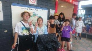 学校を出発して、最初の休憩地羽生PAです。天気は、どしゃ降りの雨です。全員元気です。
