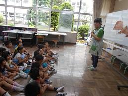 今日の2時間目の1年生の国語の時間に、お話ボランティアさんが入って授業を実施しました。これは、この後の読書教材に興味を持って取り組めるようにするために取り入れたものです。今日は「いろいろ いちご」の話をボードシアターで子どもたちに聞かせてくれました。子どもたちは、とても楽しくお話を聞くことができました。