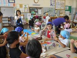 今日の昼休みに、図書ボランティアさんたちによる、七夕クラフトづくりが行われました。参加した子どもたちは、ボランティアさん達に教わりながら、楽しそうに折り紙で星の形を作って、そこに願い事を書き模造紙に貼って掲示しました。