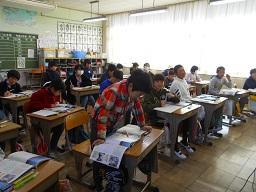 今日の1時間目に、6年生の社会の授業も見てきました。環境問題の続きで、今日は公害の四日市ぜんそくについて学習していました。四日市ぜんそくの発作を起こした小学生や中学生の手記などが取り上げられ、公害から国土の環境や人々の健康な生活を守ることの大切さが理解されているようでした。