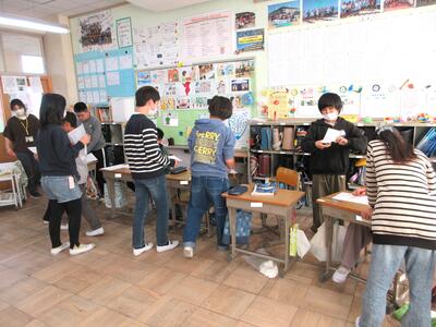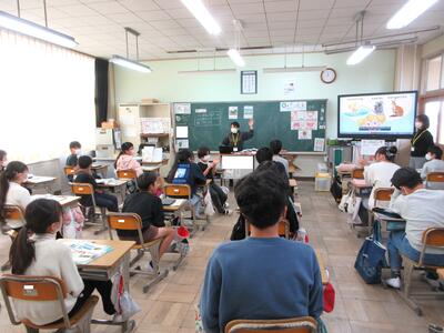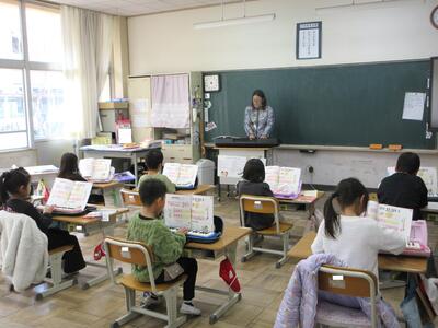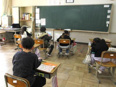 授業の様子(12月9日) 投稿日時 : 16:00 中央小学校管理者 カテゴリ: 1年生の音楽では、鍵盤ハーモニカで「どれみふぁそ」の場所を確かめながら、演奏しています。 2年生は、算数のテストが終わったところでした。テストが終わった児童は読書をしています。 3年生の理科では、電池と電球のつなぎ方を考えています。 4年生の理科では、空気は温度によって体積が変わるのか実験をしています。 5年生の国語では、漢字を使った問題作りで、友達と問題を解き合っています。 6年生の外国語では、世界の国を英語のヒントで考えています。 2組では、道徳で日本の心について考えています。