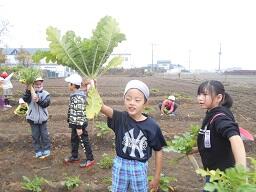 今日の1時間目に、2年生の生活科の授業を見てきました。学校支援ボランティアさんの協力を得て栽培している大根の収穫をしていました。笑顔がいっぱいの2年生でした。