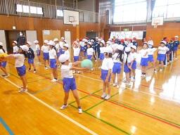 今日の2時間目に、1、2年生の合同体育の授業を見てきました。「体ほぐしの運動」で、ボールを使ってリレー形式で楽しく活動していました。