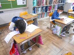 今日の2時間目に、3年生の国語の授業を見てきました。漢字ドリルを使って、漢字練習をしていましたが、みんな真剣に取り組んでいました。