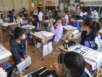 グループになって、「フキノトウ」の音読発表の練習をしました。