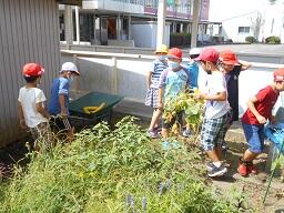 今日の2時間目に、2年生の生活科の授業を見てきました。最初に教室の近くの畑を片付けた後に、大根をまいた畑に行って、水やりと除草をしてきました。大根は半分近くが芽が出てきて、子どもたちは大喜びでした。またポップコーンになるトウモロコシも順調に育っています。この後がとても楽しみです。