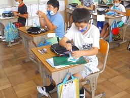今日の3時間目に、5年生の家庭科の授業を見てきました。これから始まる手縫いの導入で、裁縫箱の中身を一つ一つていねいに確認し、何のための道具なのかを説明していました。これから作品を作ることになりますが、出来上がりが楽しみです。