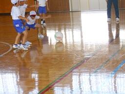 今日の4時間目に、1年生の体育の授業を見てきました。ころがしドッジボールのルールを聞いて、その後試しのゲームをやっていました。みんなとても楽しそうでした。