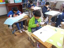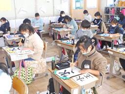 今日の2時間目に、3年生の書写の授業を見てきました。「水玉」という文字をみんな真剣に書いていました。ていねいな指導で、みんな上手に書けていました。