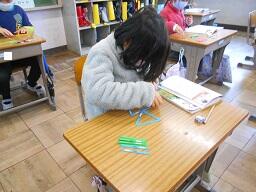 今日の1時間目に、1年生の算数の授業を見てきました。かぞえ棒を使って、教科書と同じ形を作る事に挑戦していましたが、みんなともて意欲的に取り組んでいました。