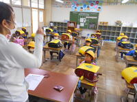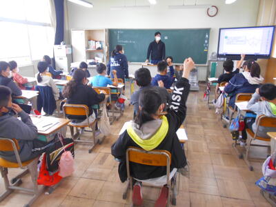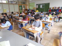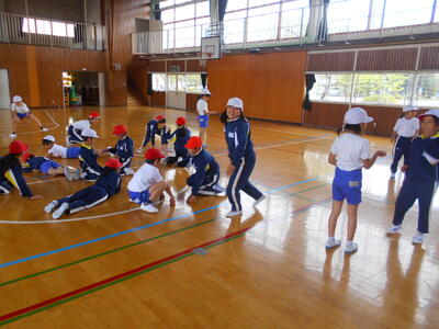 虫メガネの使い方を確かめてから、探検バックをもって校庭に出ていきました。