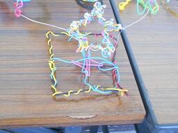 今日の2時間目に、5年生の図工の授業を見てきました。以前お知らせした針金を使っての工作のつづきをやっていましたが、続々完成していました。なかなか面白い作品が出来上がっていました。