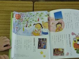◎「たなばたさま」の歌です。教室にも笹が飾ってあります。