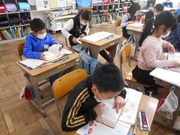 今日の3時間目に、3年生の国語の授業も見てきました。ことわざについての学習で、ことわざには3つの特徴があって、その中から自分が調べたい特徴を決めて、国語辞典やことわざ辞典を使ってその特徴のあることわざを調べるという内容でした。子どもたちと立てた14時間分の学習計画が掲示され、先を見通すことができる学習に、子どもたちは意欲的に取り組んでいました。